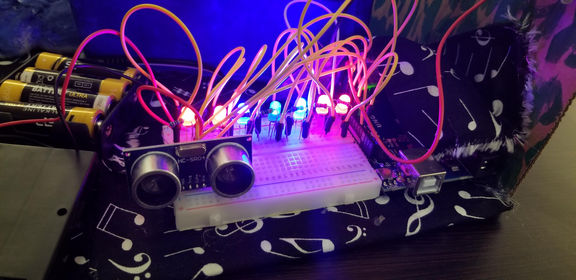 Color game: The person has to wave a hand in front of the LiDAR sensor to stop the color at the correct spot.